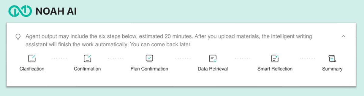 Figure 1. Once clarification is complete, Noah automatically starts the analysis based on your specific request.